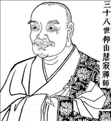 慧寂禅师,韶州怀化人,出家后没有受具足戒就到各处参学,初谒南阳慧忠的侍者耽源道真,道真对他说:"国师(慧忠)当时传得六代祖师圆相,共九十七个,授与老僧,(中略)我今付汝,汝当奉持。"慧寂接过来看了一下就把它烧掉。后来到沩山,参灵佑,灵佑问他:"汝是有主沙弥,无主沙弥?"慧寂说:"有主。"灵佑说:"主在什么处?"慧寂从西边走到东边站着,灵佑知道他和常人不同,便加以开示。既而慧寂问:"如何是真佛住处?"灵佑说:"以思无思之妙,反思灵焰之无穷,思尽还源,性相常住,事理不二,真佛如如。"慧寂于言下顿悟,从此执侍,前后十五年,开沩仰一宗。慧寂传受灵佑心印之后,率领徒众住在王莽山,既而迁到仰山,学徒奔凑。后来又迁到观音山,接机利物,为宗门标准。