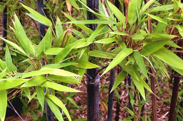 紫竹为传统的观杆竹类,竹杆紫黑色,柔和发亮,隐于绿叶之下,甚为绮丽。
