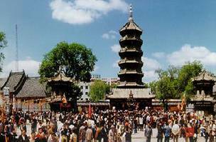 这便是佛法的无边,这便是对生命的礼赞,七级浮屠塔是一座八角七层楼阁式砖建筑。塔与殿前,东西各设两层塔式钟鼓楼,布局为国内罕见。