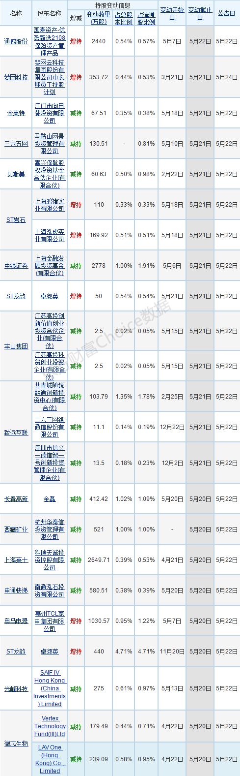 【股东增减持变动进展】