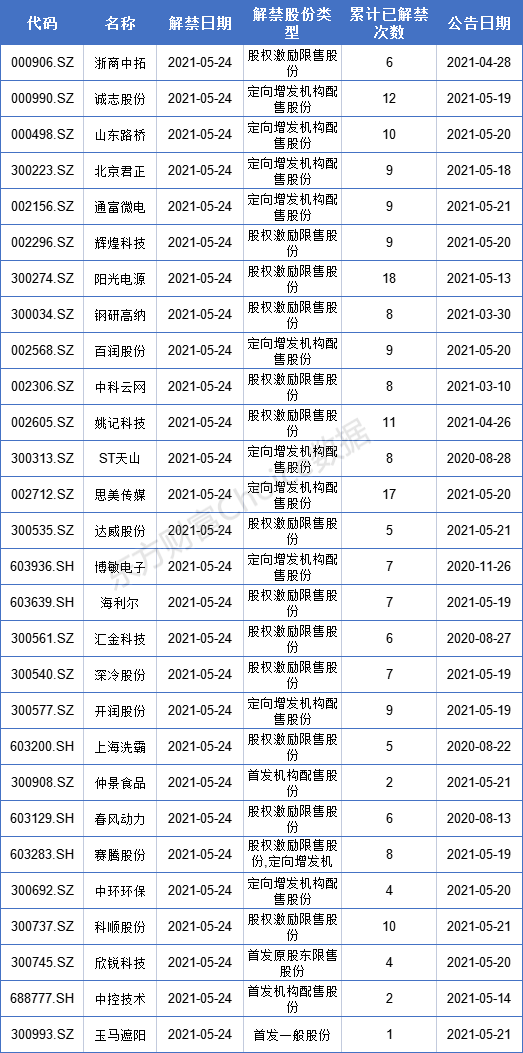 【解禁详情一览】