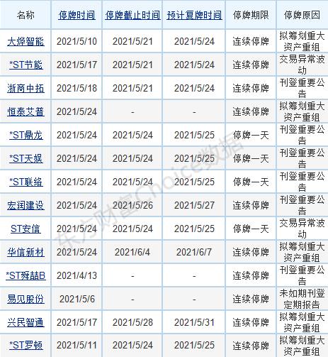 【两市停复牌一览】