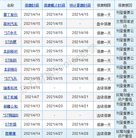 【两市停复牌一览】