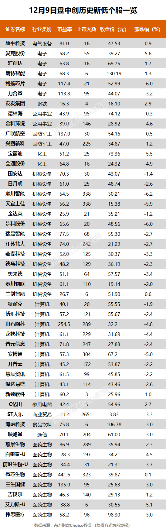 创业板指跌近2% 阳光电源、天赐材料等24股创历史新高