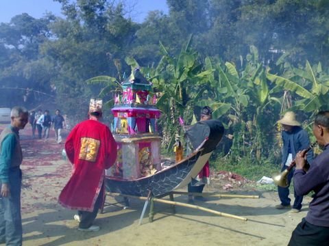游神时,十分热闹:放云铳云炮的、抬神轿的、敲锣打鼓的、吹嘀嗒(也称唢呐)的、扛旗扛灯笼打大伞的、抬祭器和纸船、后面还跟着道公佬和做些小生意的小贩,一起出游。夜晚的时候,有的村子,还会有许多村中的小孩和大人手拿自制的火炬跟随队伍,这样一支庞大的游神队伍在村中游行,煞是壮观。