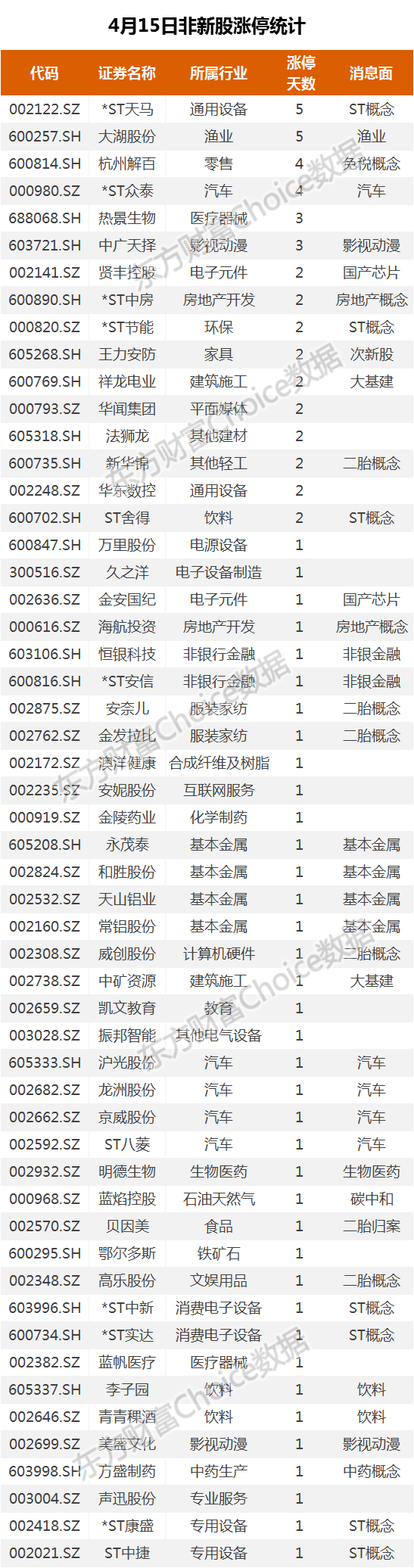 4月15日新股涨停统计
