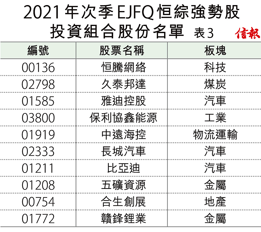 第二季名單方面,筆者按3月31日收市價,因應前述篩選準則,列出新一季度「恒綜組合」【表3】及「德里豪斯組合」【表4】。