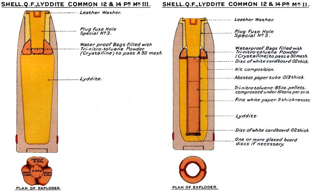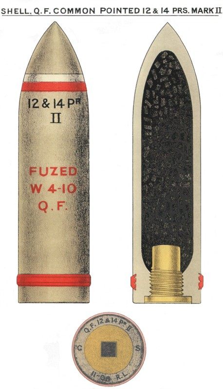- 装药:0.95 kg SC061或1.25 kg NF059 初速: 英国:681米/秒; 意大利:HE:680米/秒; AA:690米/秒