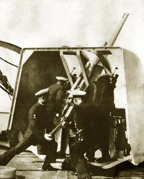 民国是万国牌军队,其海军战舰既有英国版也有日本版。英国版是平海号、逸仙号轻巡洋舰等的高炮,而日本版则是宁海号轻巡洋舰的高炮。1937年4月22日,平海舰击落一架龙骧号航母上的舰载机,这是中国海军第一次击落敌机。