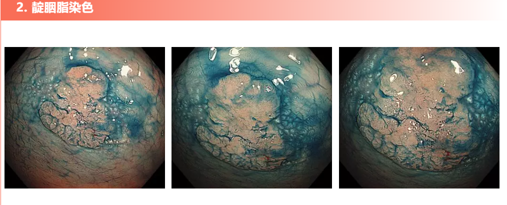 ①整体:染色后病变边界更加清晰。
