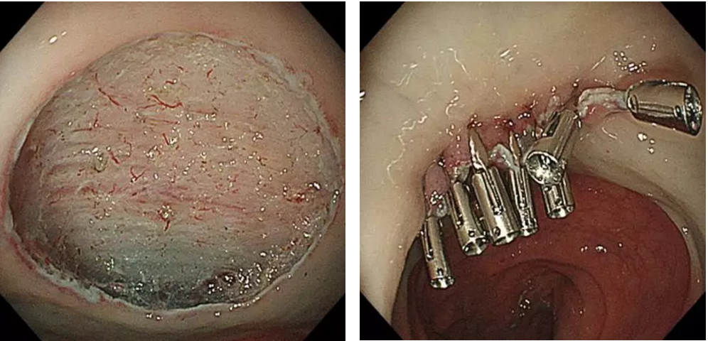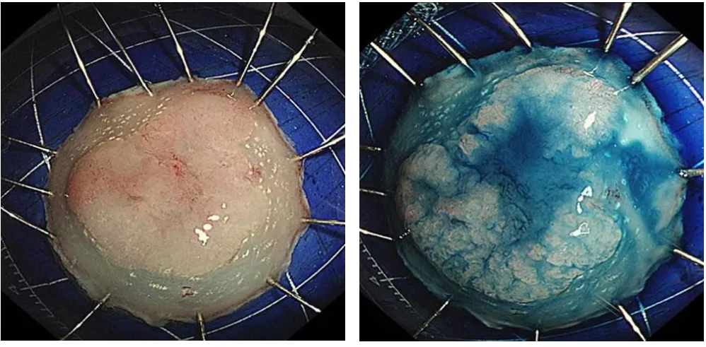 术前诊断提示为内镜治疗绝对适应证,考虑存在癌变,给予诊断性ESD治疗。