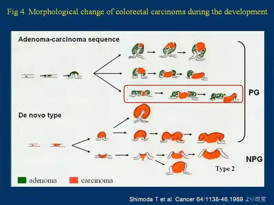 大肠癌发展过程中形态的变化如下图: